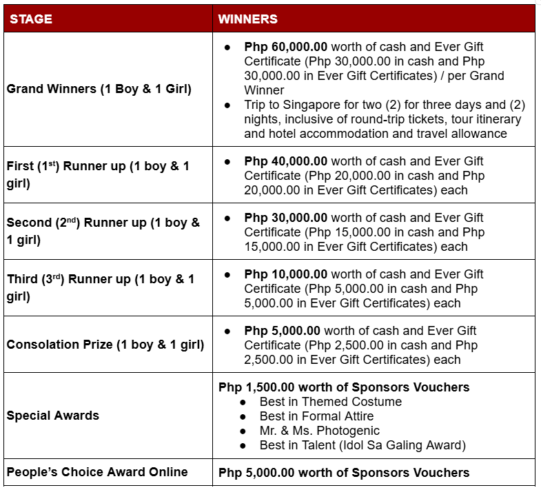 ○ Special Awards & People’s Choice Awards– Prizes may be claimed after the event at the Mall Accounting Office of the Mall where the Grand Finals was held.