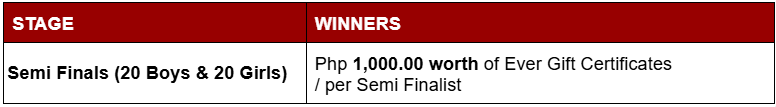 ○ Ever Gift certificates may be claimed after the event at the Mall Accounting Office of the Mall where the Grand Finals was held.